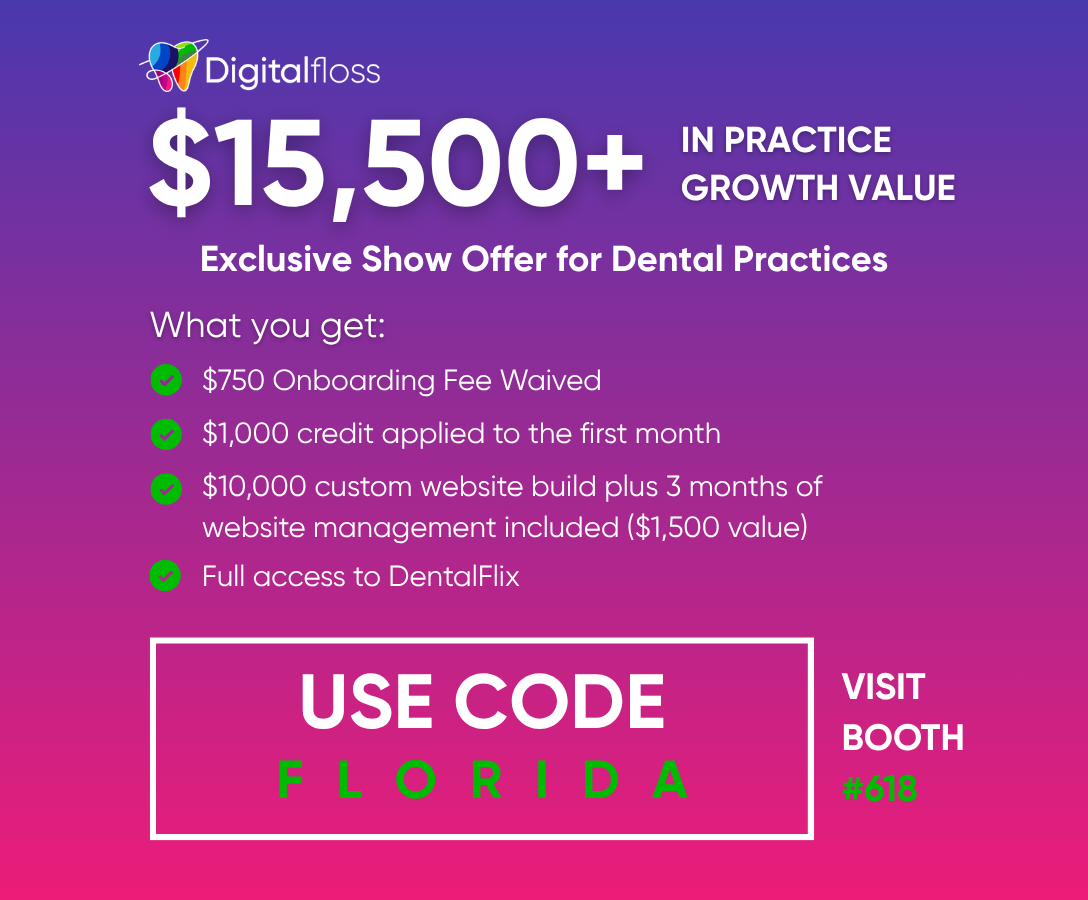 Disclaimer: The vendors issuing these coupons are in no way affiliated with the Florida Dental Association or FDC. Coupons have no cash value and cannot be sold or transferred. The offer is good only for FDC registrants who redeem the original coupon in person in the FDC Exhibit Hall between June 25-27, 2026. Not valid when combined with other offers. Price and participation may vary. Plus tax if applicable.